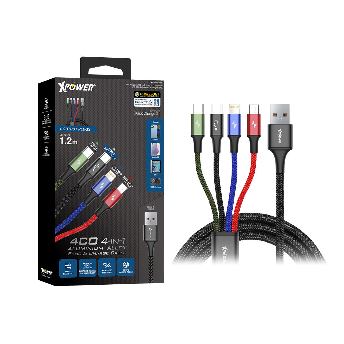 •4合1設計: Type-C(DATA+QC3.0)、Type-C、� Micro USB & Lightning