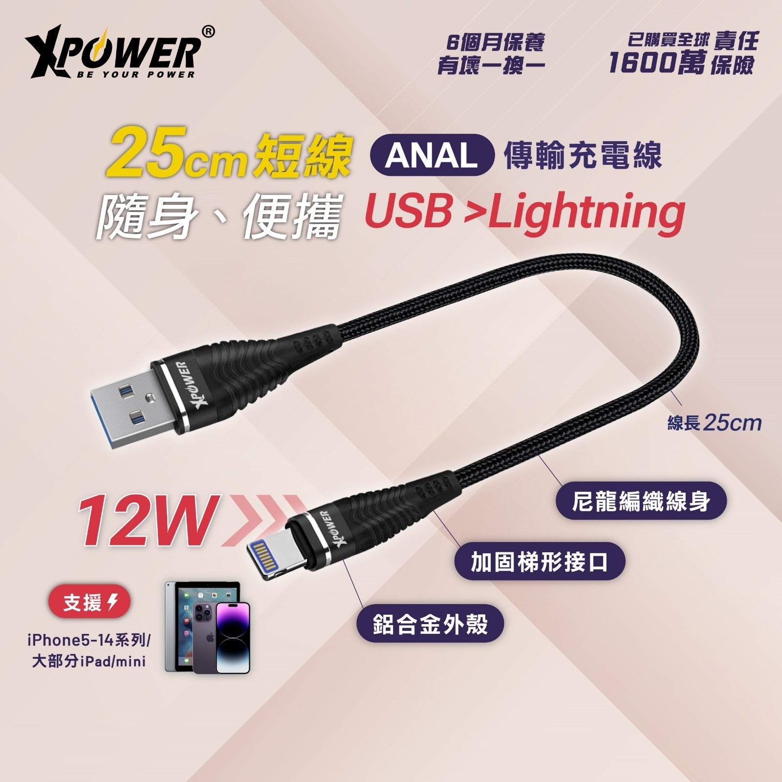 ANAL 25cm鋁合金高速傳輸充電USB>Lightning線