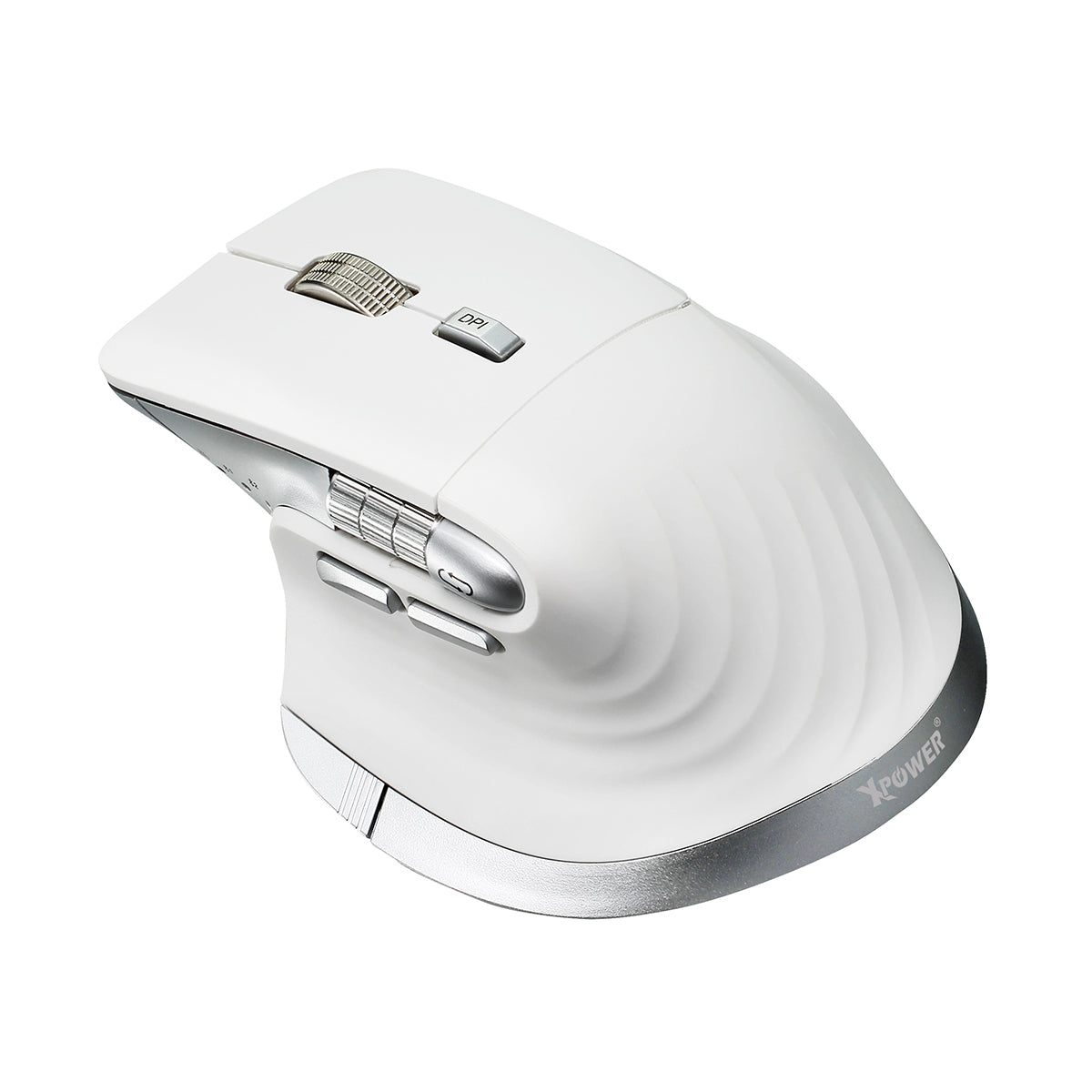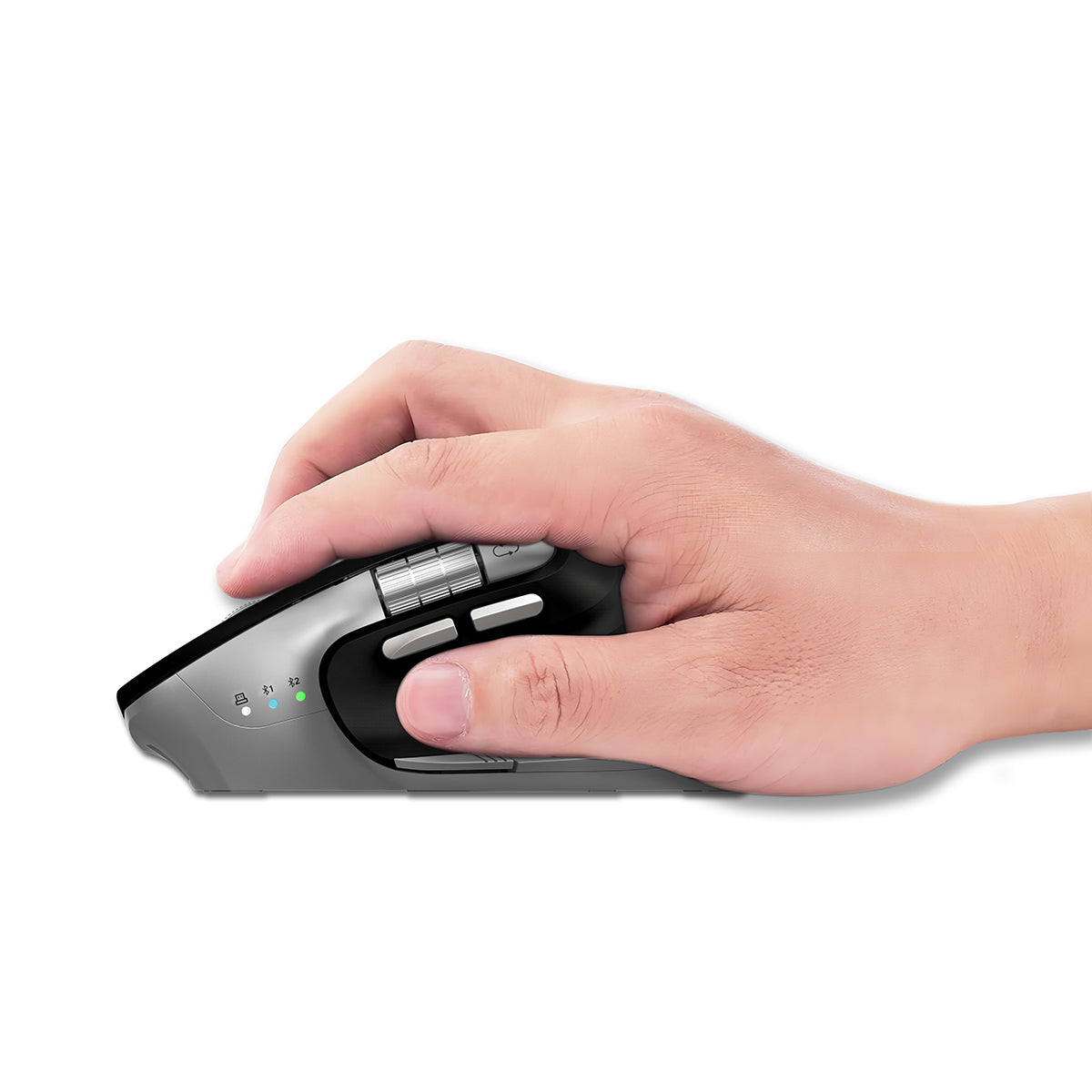 •2.4G無線 + 2xBluetooth 5.0(一鍵切換) •支援Android/iOS/Mac OS/Windows •左右橫向滾輪,人體功學設計 •5 段 DPI轉換1000-1600-2400-3200-4800 •DPI 顯示: 閃一下level1, 閃2下level2....... •雙檔式滾輪設計:  1.帶段落感的慢速滾動 2.低摩擦力的極速滾動 •無聲靜音點擊 •顯示桌面功能按鍵 •TYPE-C充電,長效電池續航 (一次充充滿電可以用80-90個小時)•安全認證: CE RoHS •尺寸: W123xD85xH50mm & 120g