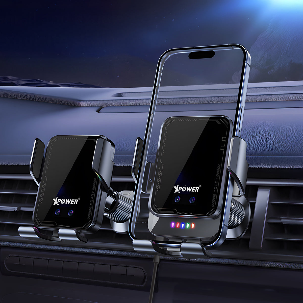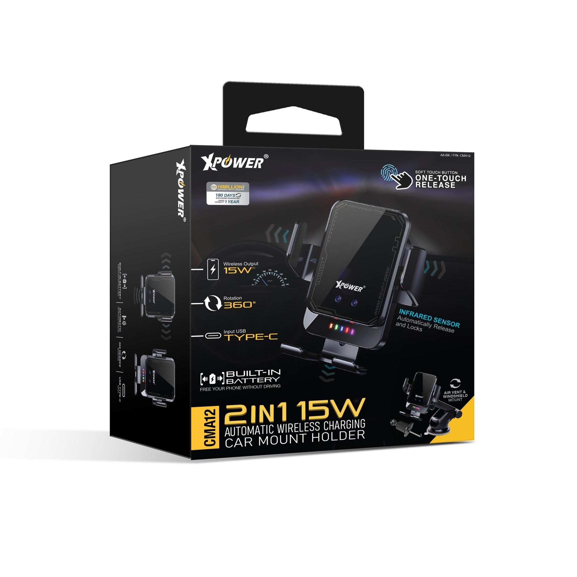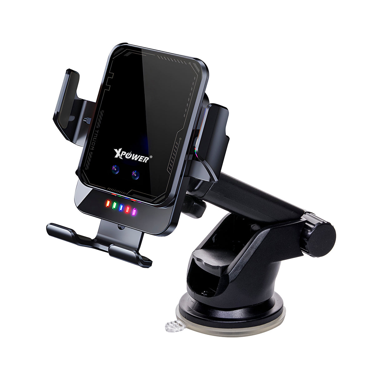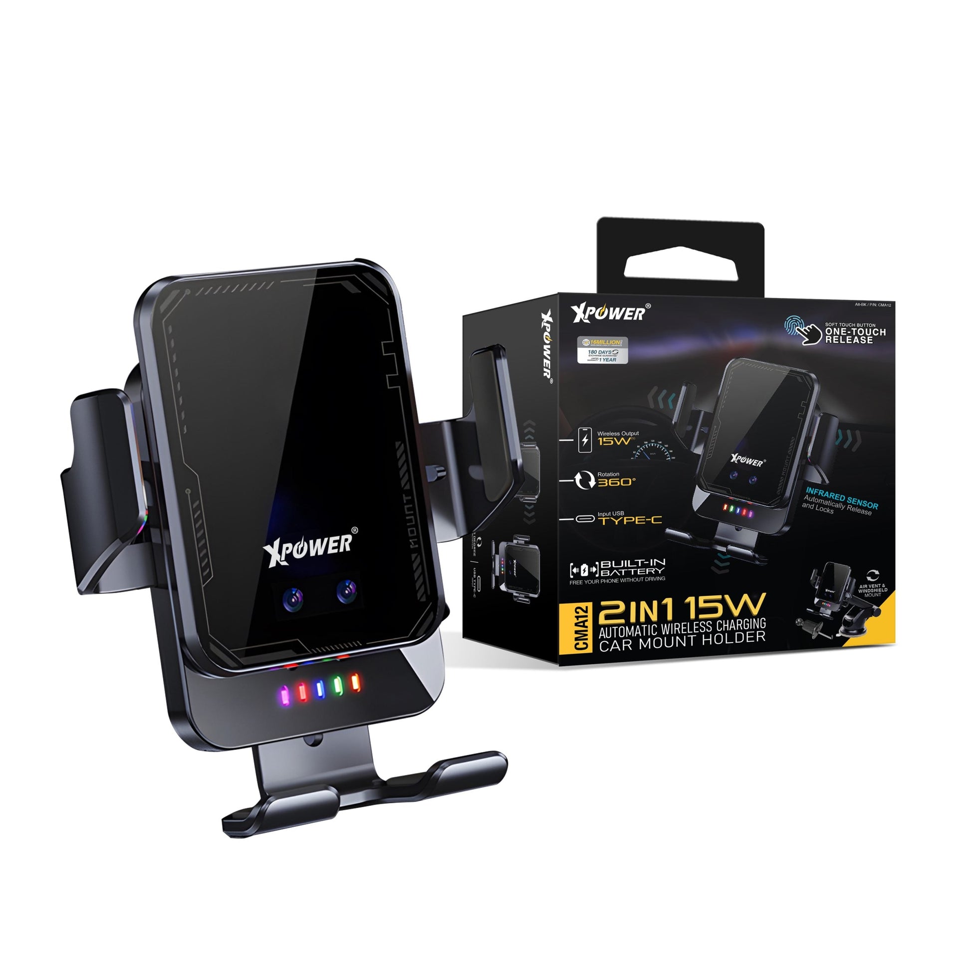 •紅外線感應自動鎖緊及輕按自動釋放 •15W(max)無線快充 •自動調節手機夾,支援不同尺寸之手機 •適用手機闊度62-90mm •2合1套裝:冷氣風口夾及玻璃吸盤(360度旋轉設計) •內置電池,免著車釋放手機 •輸入: Type-C 9V/1.67A •安全認證,優質可靠: CE FCC RoHS •安全保護裝置: 短路/過充/過熱/過流保護 •充電支架尺寸: W68xH90xD65(mm) & 110g