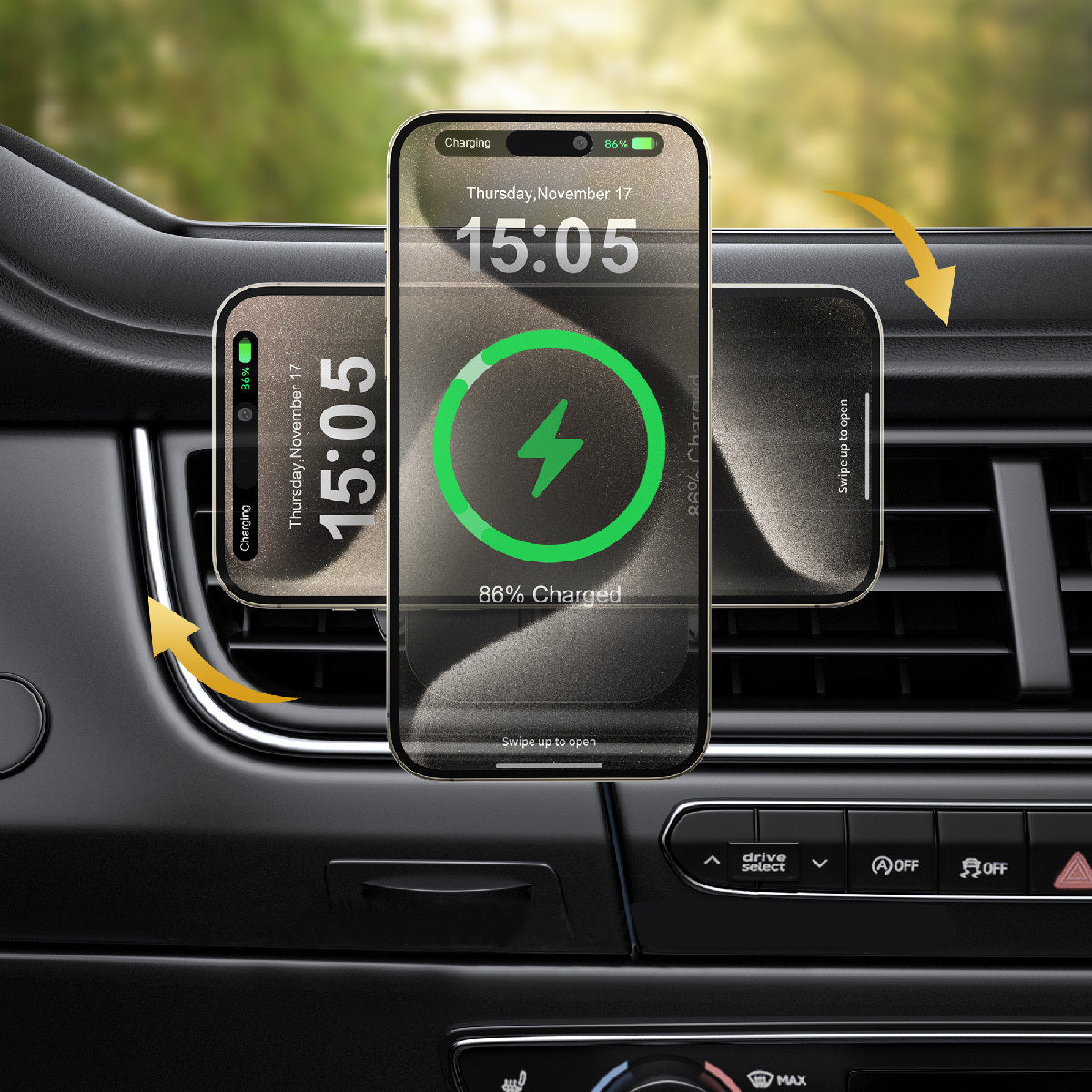* Qi2原裝認證,為iPhone12-15系列提供最大15W磁吸無線快充 * 手機可直放及橫放充電 * 360°旋轉設計 * 3合1套裝: Tesla Model 3/Y專用支架、冷氣風口夾及玻璃吸盤 * N52強力磁鐵,磁吸充電 * 支援Type-C輸入 * 安全認證: CE, FCC, RoHS * 支架尺寸: W65 x L95 x D9(mm) & 79g