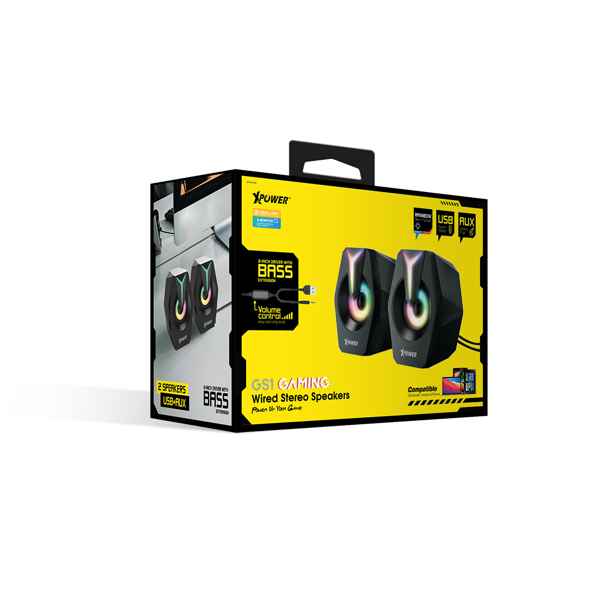 •炫彩七色呼吸燈效果 •2吋驅動單元增強音質 •震撼有力重低音 •雙喇叭全方位立體聲 •獨立調節音量按鍵 •3.5mm音源線輸入,即插即用 •獨立USB線供電 •兼容電腦,電視,手機等 •尺寸: 80x110x78(mm) & 416g