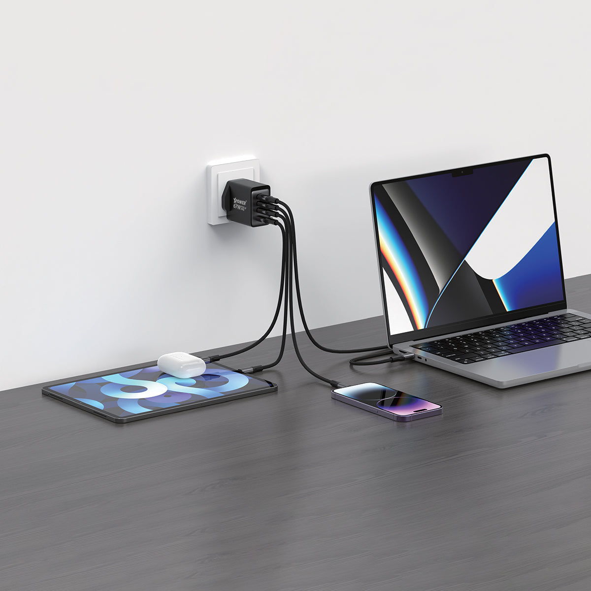 * 最高67W輸出 * 支援67W PD 3.0 & PPS/ 22.5W SCP * 4x 輸出: 3x Type-C & 1x USB * 可充macbook/ iPhone15/ 大部份Android/ Switch(支援Dock Mock) * GaN晶片,迷你輕巧 * 安全認證,優質可靠: UKCA, RoHS, IEC 62368-1, ES1363 * 安全保護裝置: 短路/過充/過熱/過流保護 * 輸入: AC200-240V~1.5A(max), 50-60Hz * 尺寸: 53 x 47 x 75(mm) & 148g