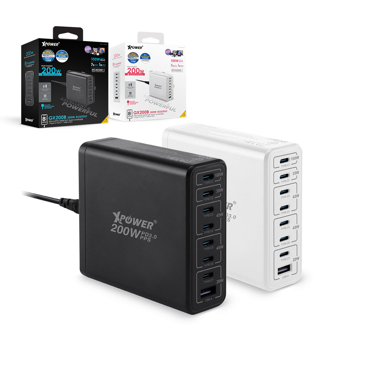 GX200B 200W 8輸出 PD3.0/PPS 桌上型GaN充電器