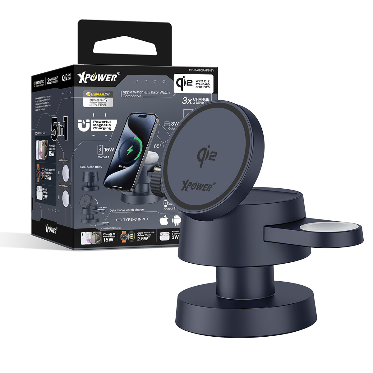 MAGCRAFT 5合1 Qi2 15W MagCharge磁吸無線充電座