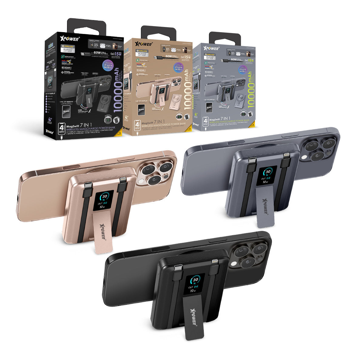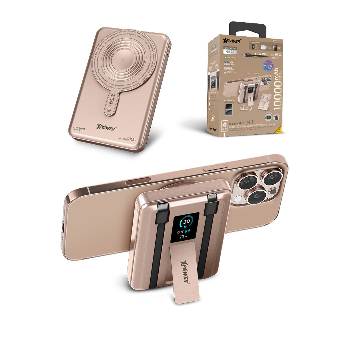 MagSwift 7合1 多功能數顯10000mAh Type-C PD / Lightning 雙內置線+磁吸PD3.0無線移動電源
