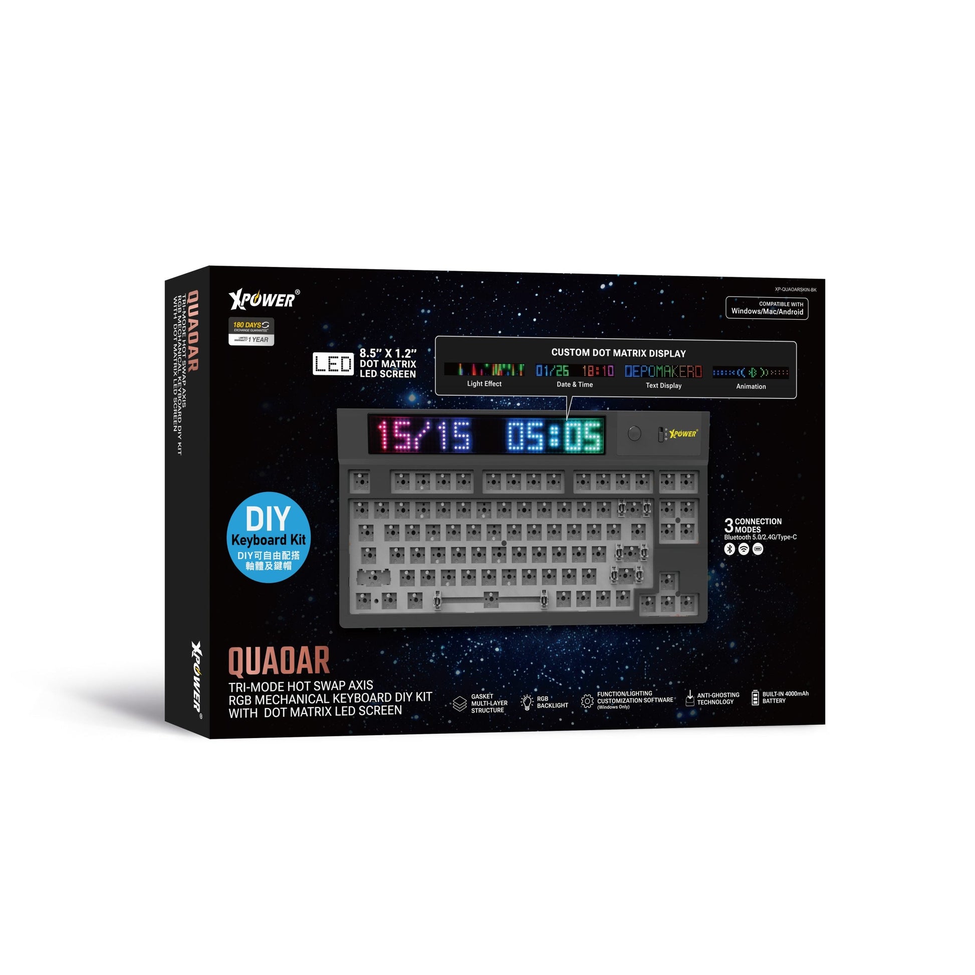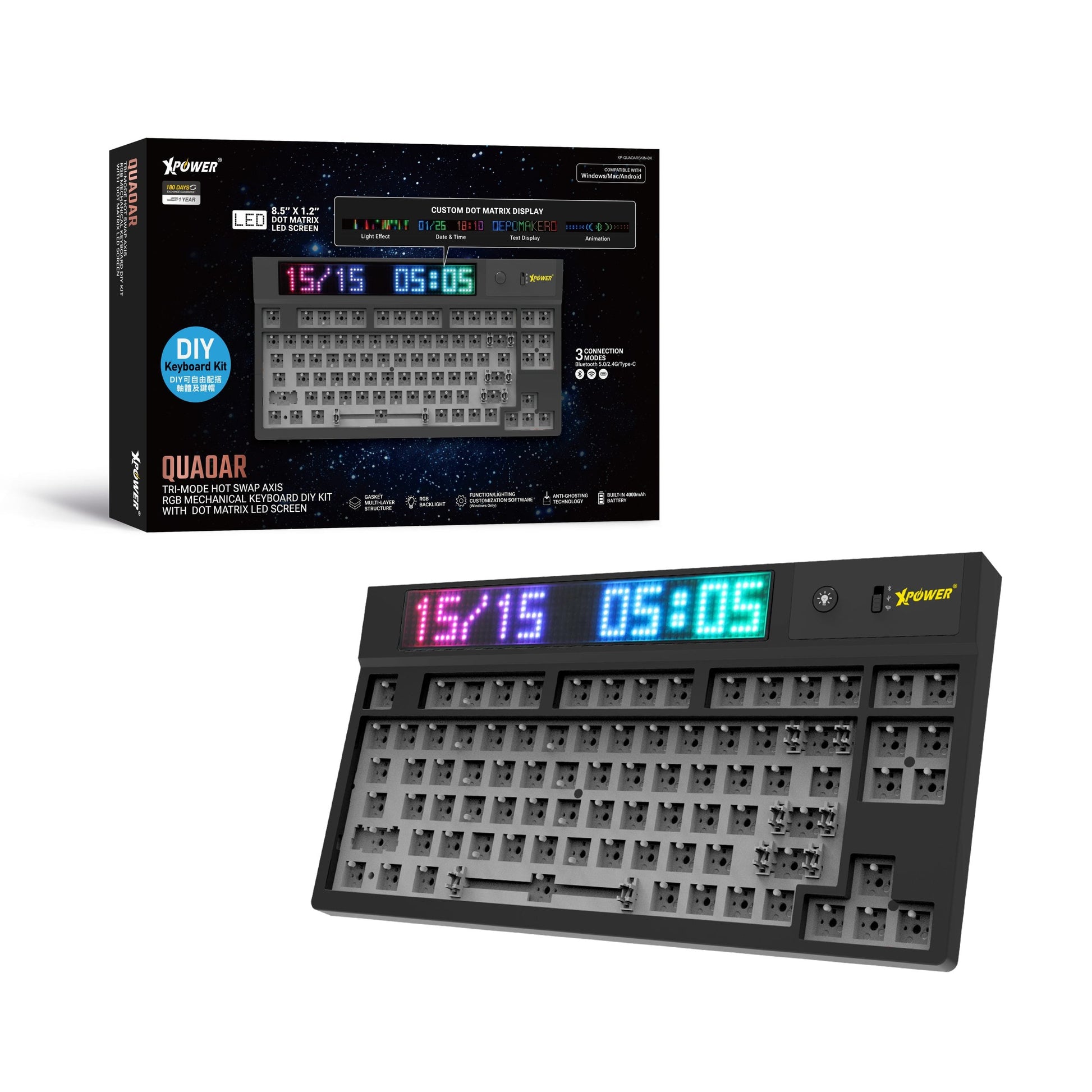 Quaoar三模熱插拔可換軸機械鍵盤DIY套件連LED點陣屏