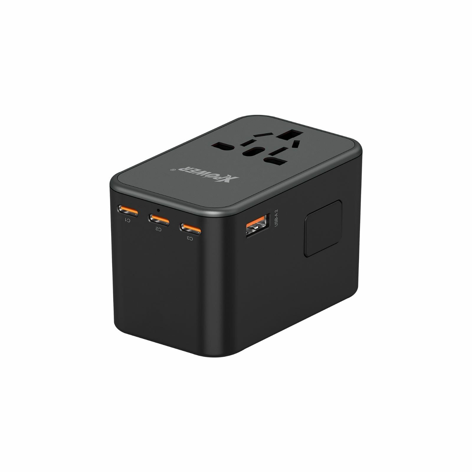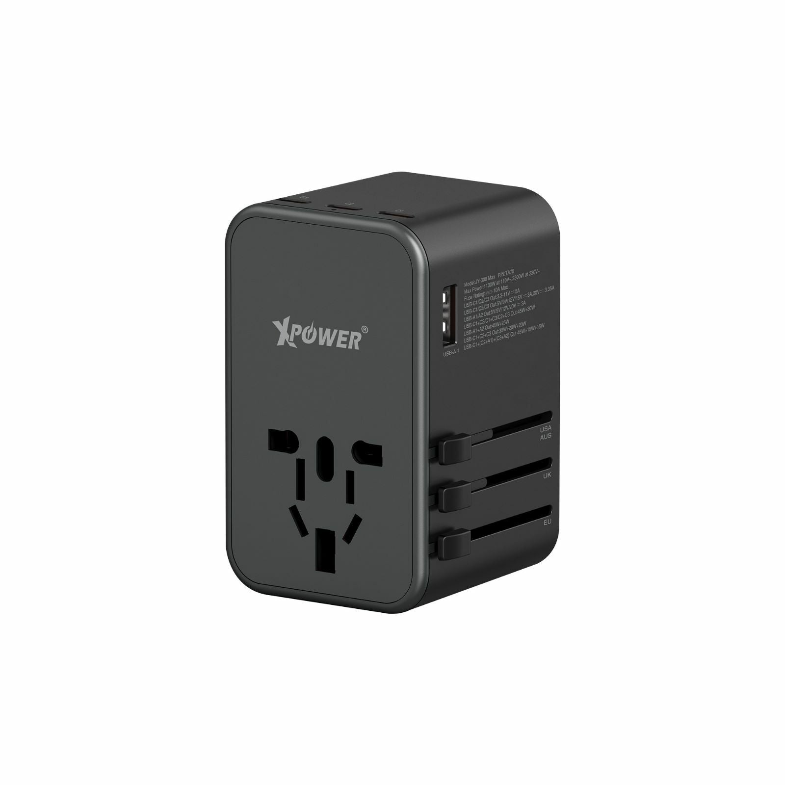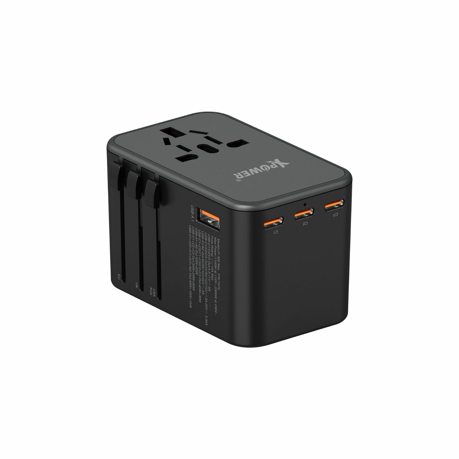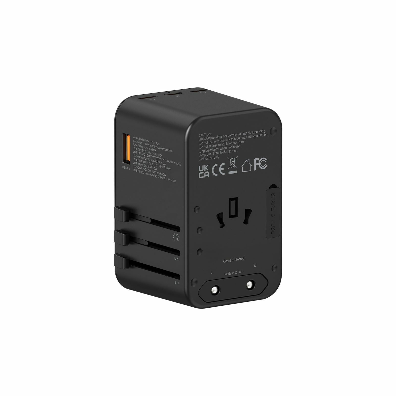 •3 x TYPE-C (最大75W PD 3.0/PPS輸出) •2 x USB (最大60W輸出) •6輸出: AC+Type-C+USB •內置GaN晶片,減少體積,加大效能 •支援4種旅行插頭 [UK/AUS/EU/US],適用於環球大部分地區 •100-240V環球通用電壓 •內置安全10A保險絲 •安全認證: UKCA CE FCC IEC-62368 •安全保護裝置: 短路/過充/過熱/過流保護 •尺寸: 55x83x53mm & 232g