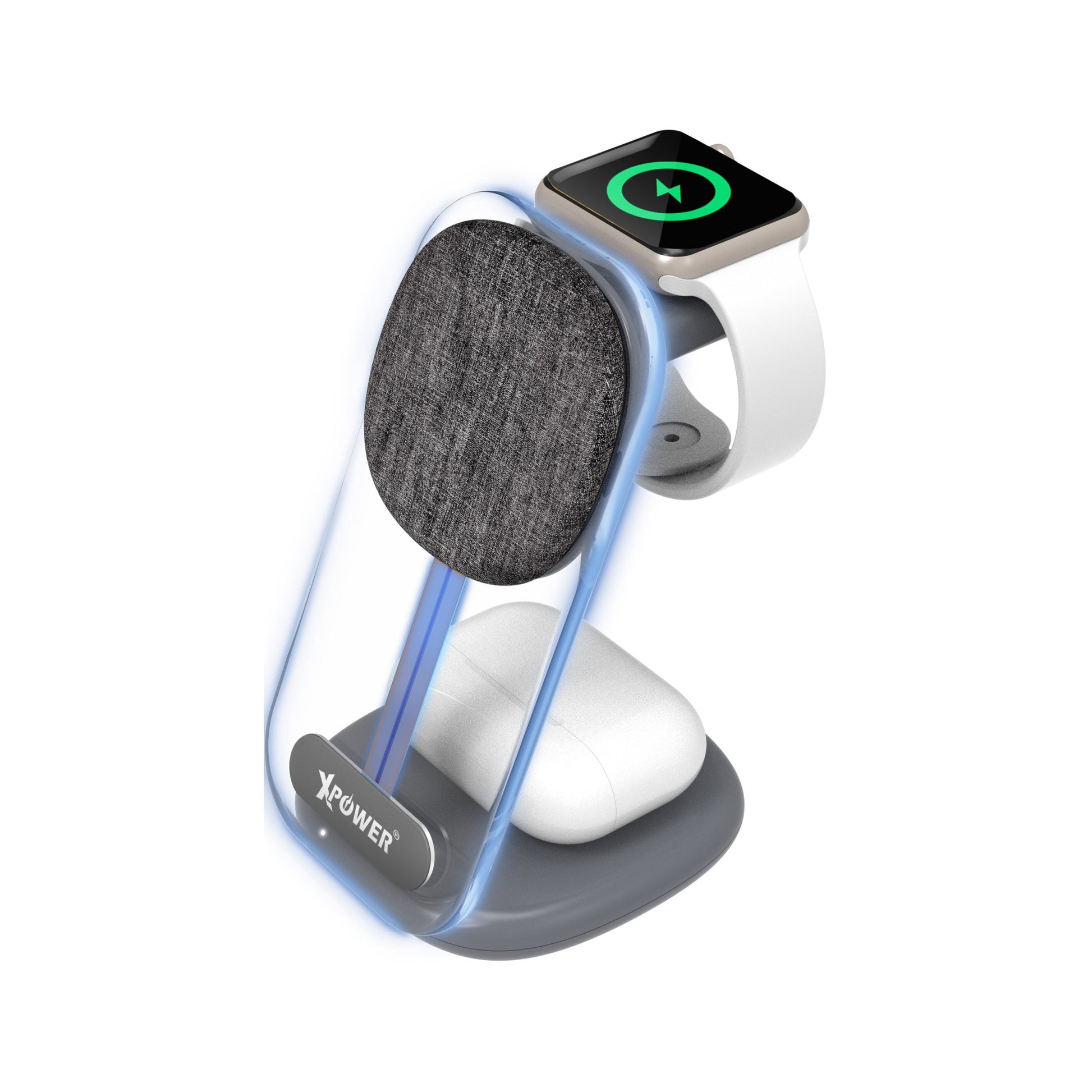 •15W無線快充,支援3裝置同時充電 •支援iPhone 14等Magnetic磁吸充電 •支援Apple Watch/AirPods 2/AirPods Pro充電 •可拆卸Apple Watch無線磁吸充電器可作獨立使用 •附送Apple Watch支架,可配合原裝充電線使用 •優質織物網布及內置氣氛燈 •Type-C輸入 •安全認證,優質可靠:CE •尺寸: 76x128x26mm & 180g