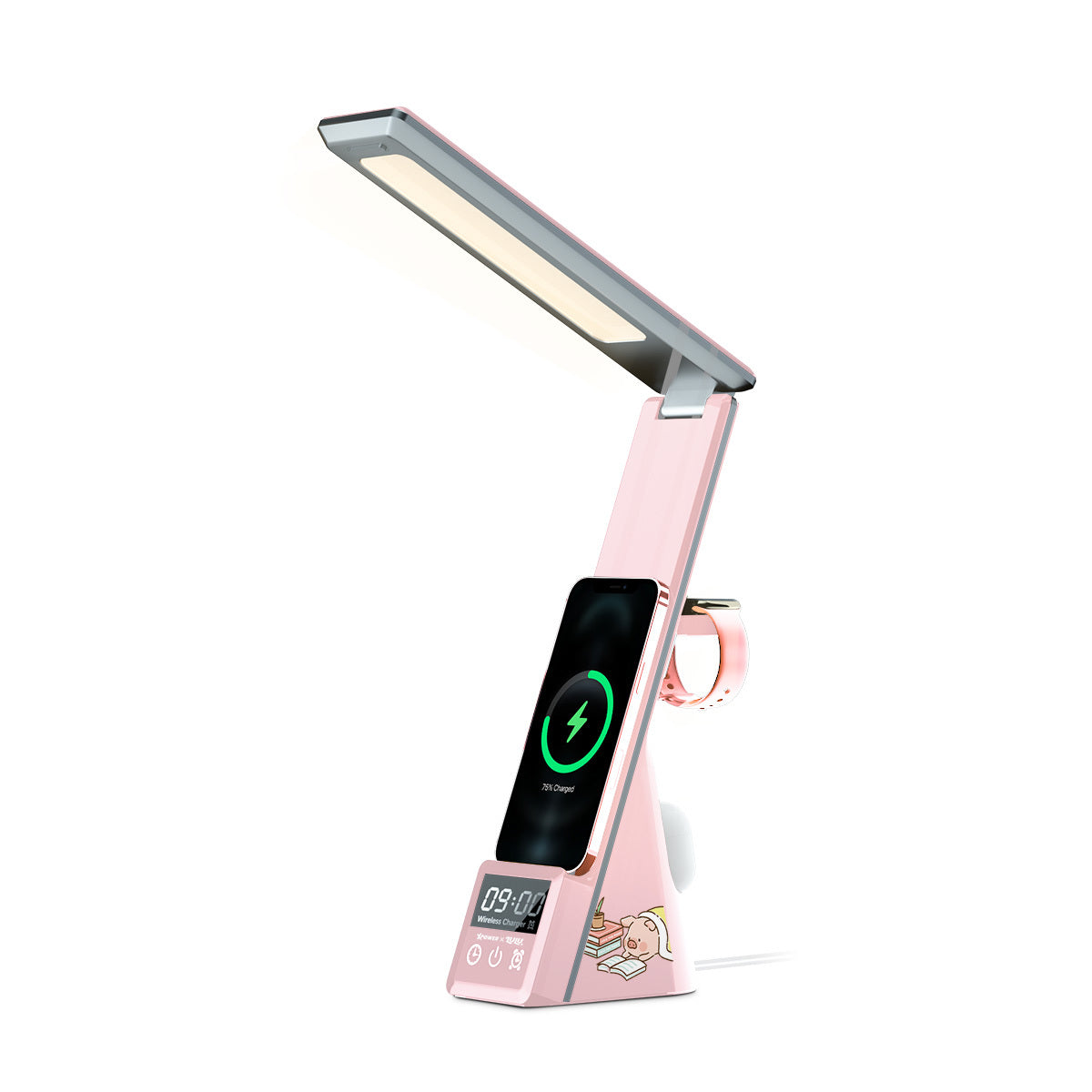 x 罐頭豬Lulu🐷 N61 6合1無線充電LED檯燈鬧鐘 (粉紅色)