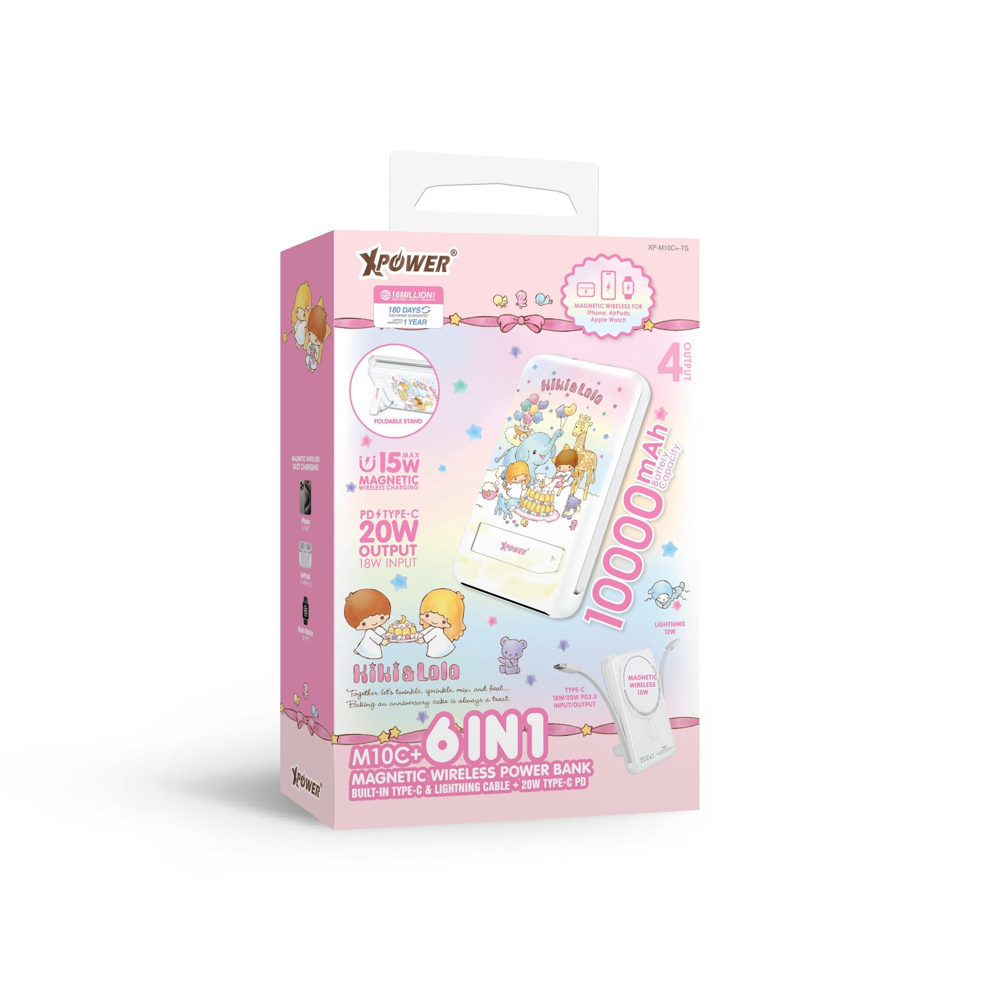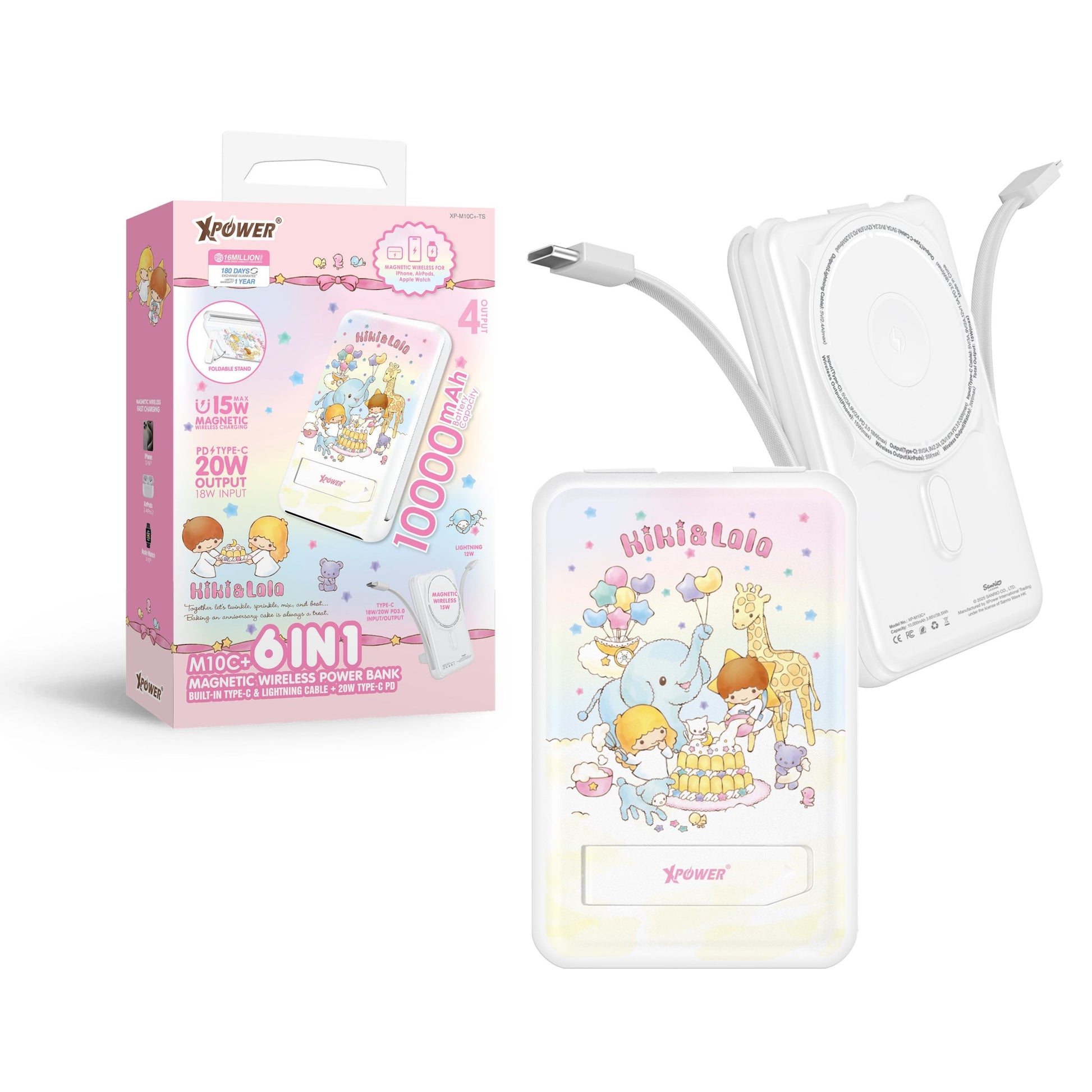 XPower x Sanrio Little Twin Stars Kiki & Lala 週年系列M10C+ 6合1 10000mAh多功能迷你20W PD3.0+ 磁吸無線快充移動電源(2C線版)