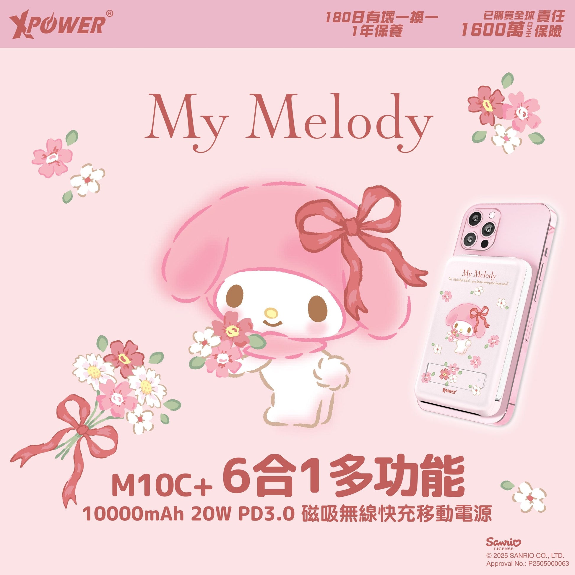 XPower x Sanrio My Melody M10C+ 6合1 10000mAh多功能迷你20W PD3.0+ 磁吸無線快充移動電源