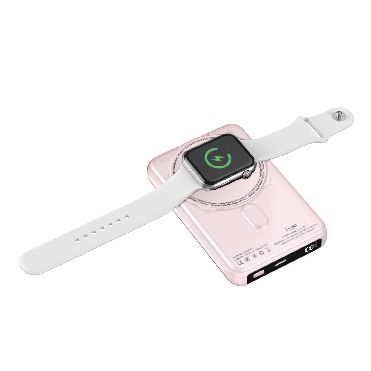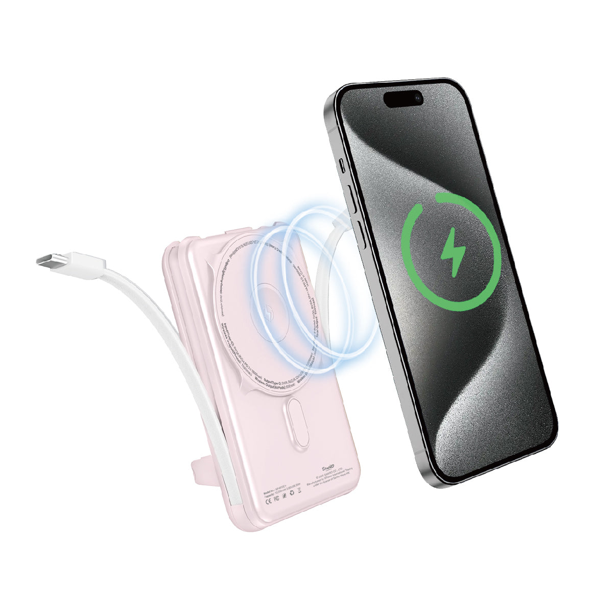 •雙內置充電線: PD Type-C(20W PD3.0輸出/18W PD3.0輸入)Lightning(12W) •MagCharge無線快充(15W Max): 支援iPhone, AirPods, Apple Watch •Type-C PD3.0: 20W輸出/18W輸入 •僅重204g,迷你體積,輕巧便攜 •N54強力釹磁鐵,150%加強吸力 •摺疊腳架,方便觀賞影片 •LED電量顯示 •附送精美收納袋 •安全認證,優質可靠: CE, FCC, RoHS •安全保護裝置: 過充/過放/過熱/過流/短路保護 •尺寸: W70 x H106 x D19mm & 204g